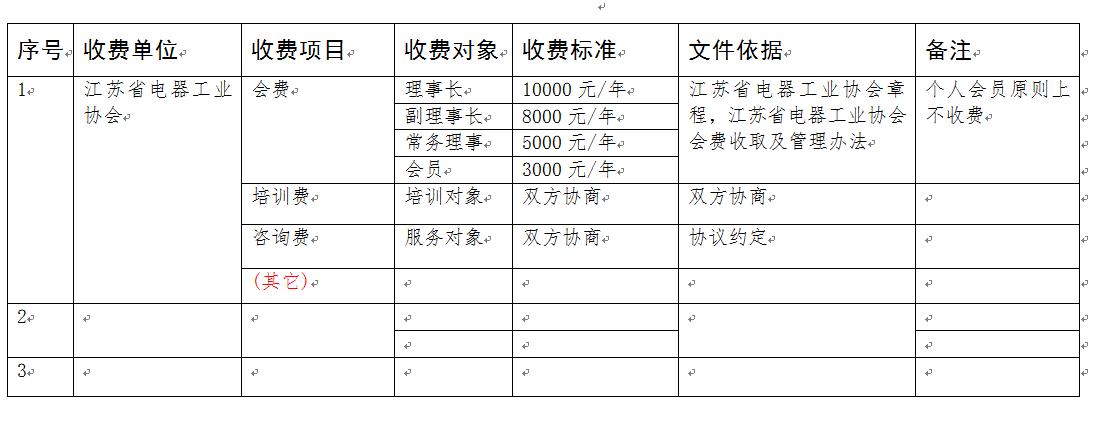 江苏省千亿qy88国际官网入口收费公示一览表