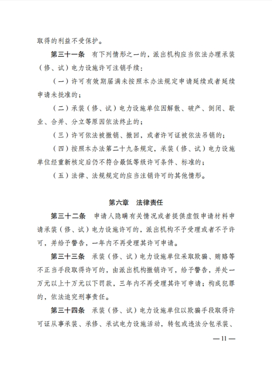 近日,国家发展改革委颁布了新修订的《承装(修、试)电力设施许可证管理办法》(国家发展改革委2025年第30号令,以下简称《办法》),自2025年7月1日起施行,原《承装(修、试)电力设施许可证管理办法》(国家发展改革委2020年第36号令)同时废止。