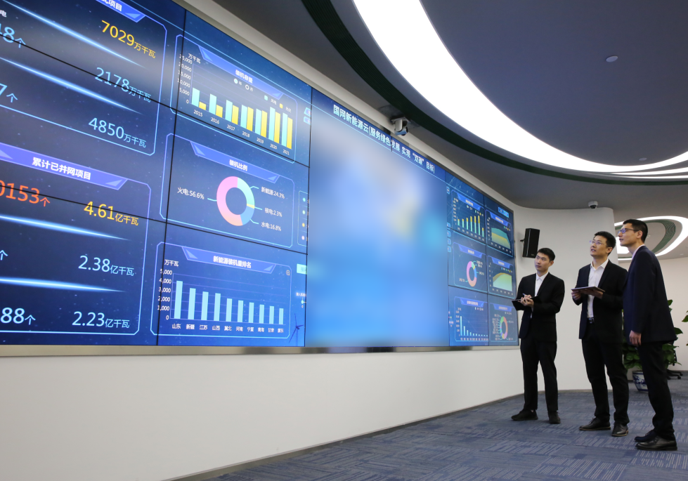 国家电网员工通过新能源云平台对清洁能源消纳情况进行监测分析