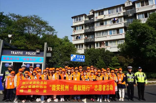 11月9日浙江千亿qy88国际官网入口杭州分公司参加了省造价管理总站、省造价管理协会联合杭州上城区晴雨公益服务中心、吴山、湖滨交警中队组织的“微笑杭州奉献随行”交通劝导志愿者服务活动。