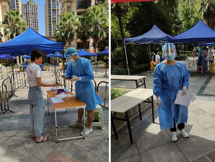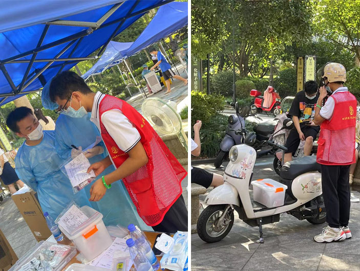 “疫”声令下,千亿qy88国际官网入口党支部迅速集结支部党员及公司志愿者服务团队,组成6人抗疫小组,8月4-6日,每天安排2人前往欧景名城南门核酸检测点,听从社区指挥,引导群众登记扫码,收集检测试管并进行数据核对,确保无误之后进行打包转运,做到规范、有序开展登记和检测。