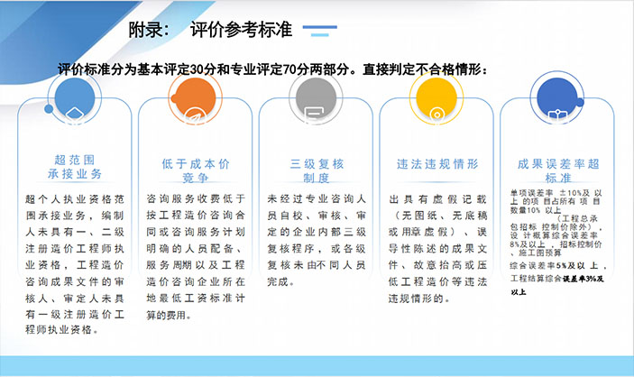 此次会议由公司技术负责人主讲,在深刻领会政策性文件核心要义的基础上,对评价导则的基本规定、成果质量控制要求、成果质量评价三大版块进行详细宣讲,并特别针对评价标准中的“超范围承接业务、低于成本价竞争、三级复核制度、违法违规情形、成果误差率超标准”等几种情形给予了着重说明。